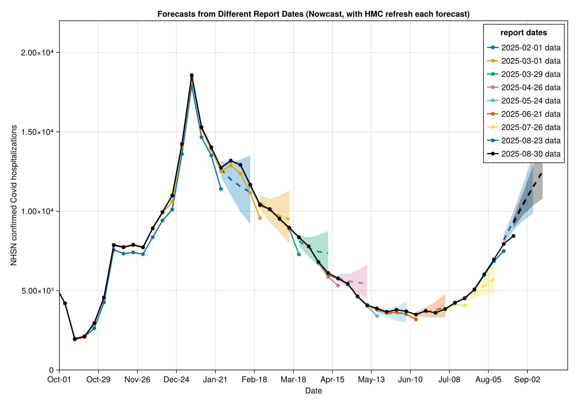 "Forecasts from Different Report Dates (Nowcast, with HMC refresh each forecast)";