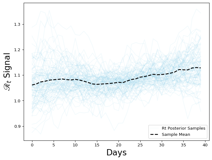 ax.plot([], [], color="skyblue", alpha=0.05, label="Rt Posterior Samples")