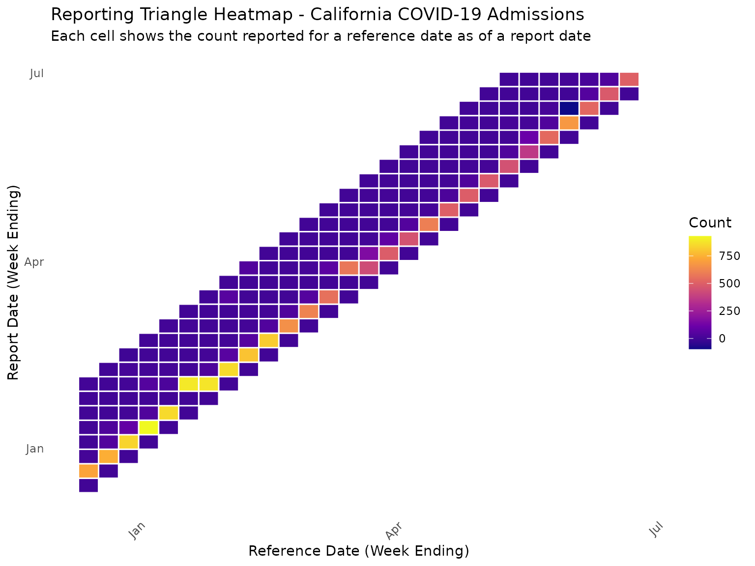 count: Cumulative COVID-19 hospital admissions reported as of that report date -